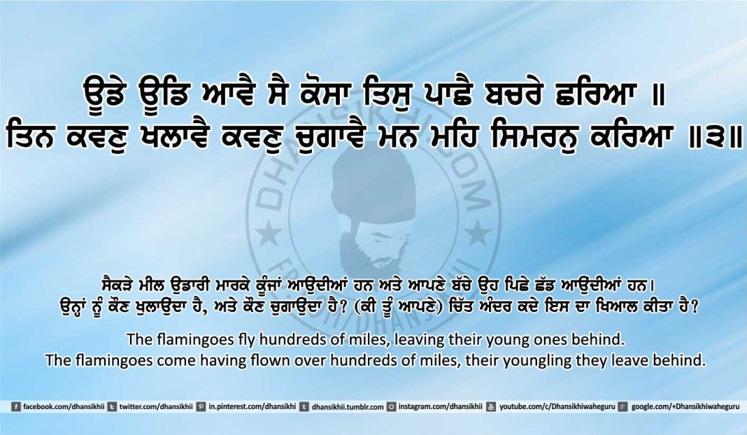 ਊਡੇ ਊਡਿ ਆਵੈ ਸੈ ਕੋਸਾ ਤਿਸੁ ਪਾਛੈ ਬਚਰੇ ਛਰਿਆ ॥