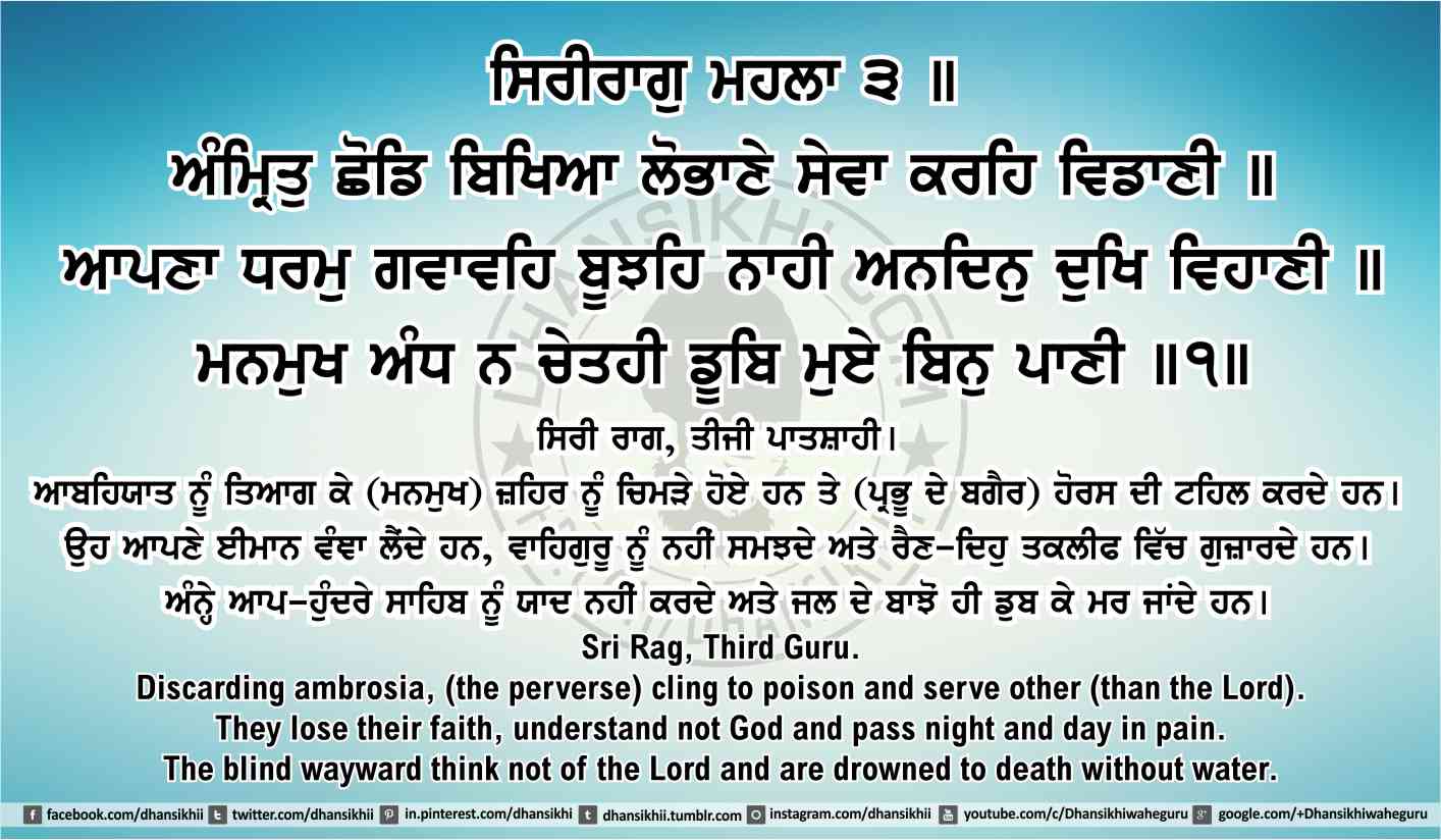 ਅੰਮ੍ਰਿਤੁ ਛੋਡਿ ਬਿਖਿਆ ਲੋਭਾਣੇ ਸੇਵਾ ਕਰਹਿ ਵਿਡਾਣੀ ॥