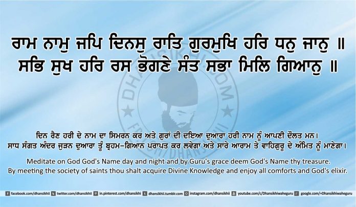 Raam Naam Jap Dhinas Raath Guramukh Har Dhhan Jaan ||