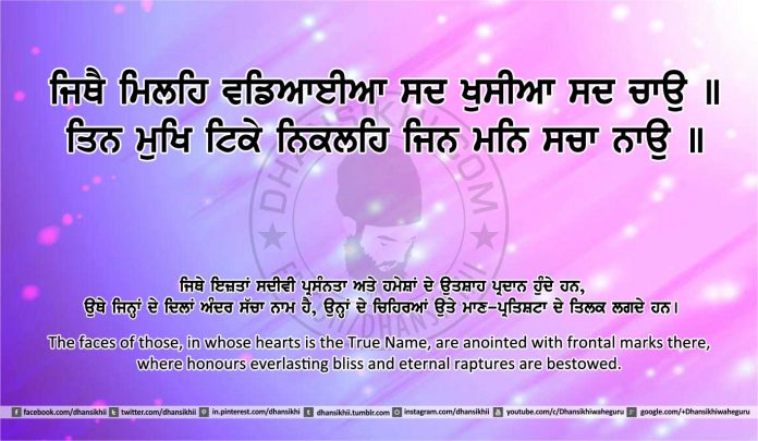 ਤਿਨ ਮੁਖਿ ਟਿਕੇ ਨਿਕਲਹਿ ਜਿਨ ਮਨਿ ਸਚਾ ਨਾਉ ॥