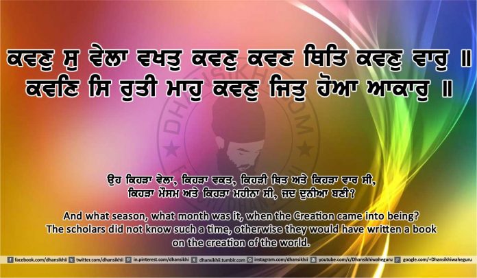 ਕਵਣੁ ਸੁ ਵੇਲਾ ਵਖਤੁ ਕਵਣੁ ਕਵਣ ਥਿਤਿ ਕਵਣੁ ਵਾਰੁ ॥