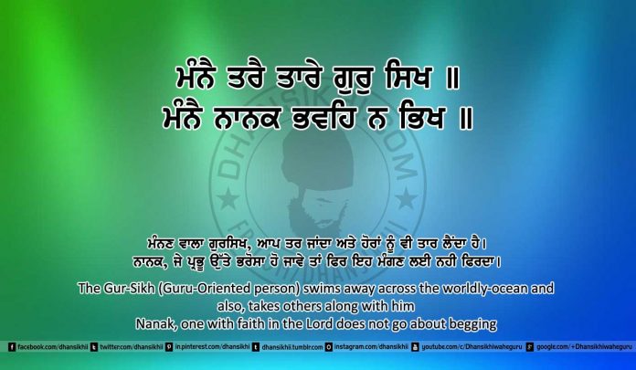 ਮੰਨੈ ਤਰੈ ਤਾਰੇ ਗੁਰੁ ਸਿਖ ॥