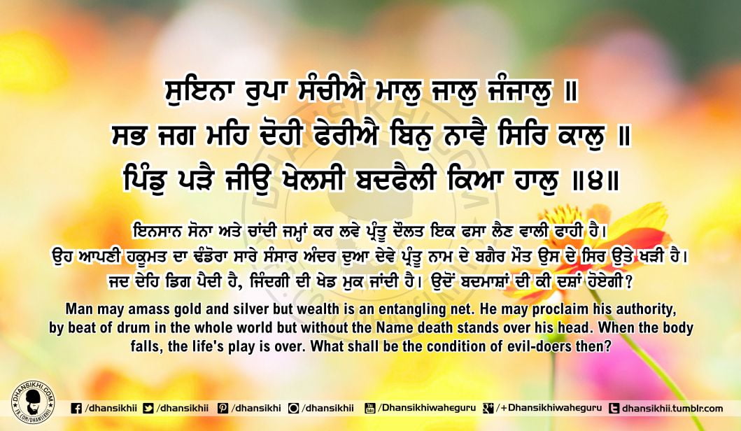 ਸਿਰੀਰਾਗੁ (ਮਃ ੧) ਅਸਟ (੧੬) ੪:੩ – ਗੁਰੂ ਗ੍ਰੰਥ ਸਾਹਿਬ : ਅੰਗ ੬੩ ਪੰ. ੧੬